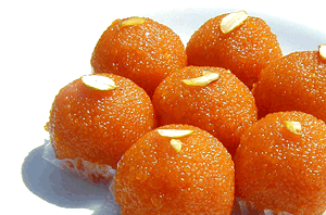 9) When the mixture is slightly warm, make medium sized ladoos from it.